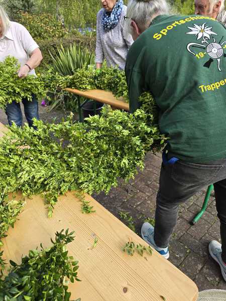 Traditionell binden die Trappenkamper Sportschützen den Mai-Kranz für den Marktplatz.