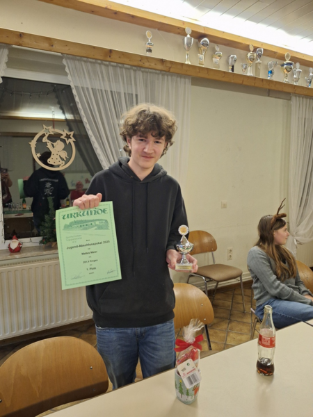 Dieses Jahr erhielt der 1. Platz der Jugend erstmalig einen Pokal - gewonnen hat diesen Mattes Maier mit 201,9 Ringen. Alle Jugendlichen erhielten außerdem für ihre Teilnahme eine kleine Weihnachtsleckerei.