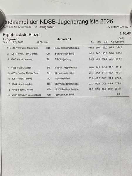 Am 18. April 2026 fand auch dieses Jahr wieder in Kellinghusen der Endkampf der NDSB- Jugendrangliste statt.